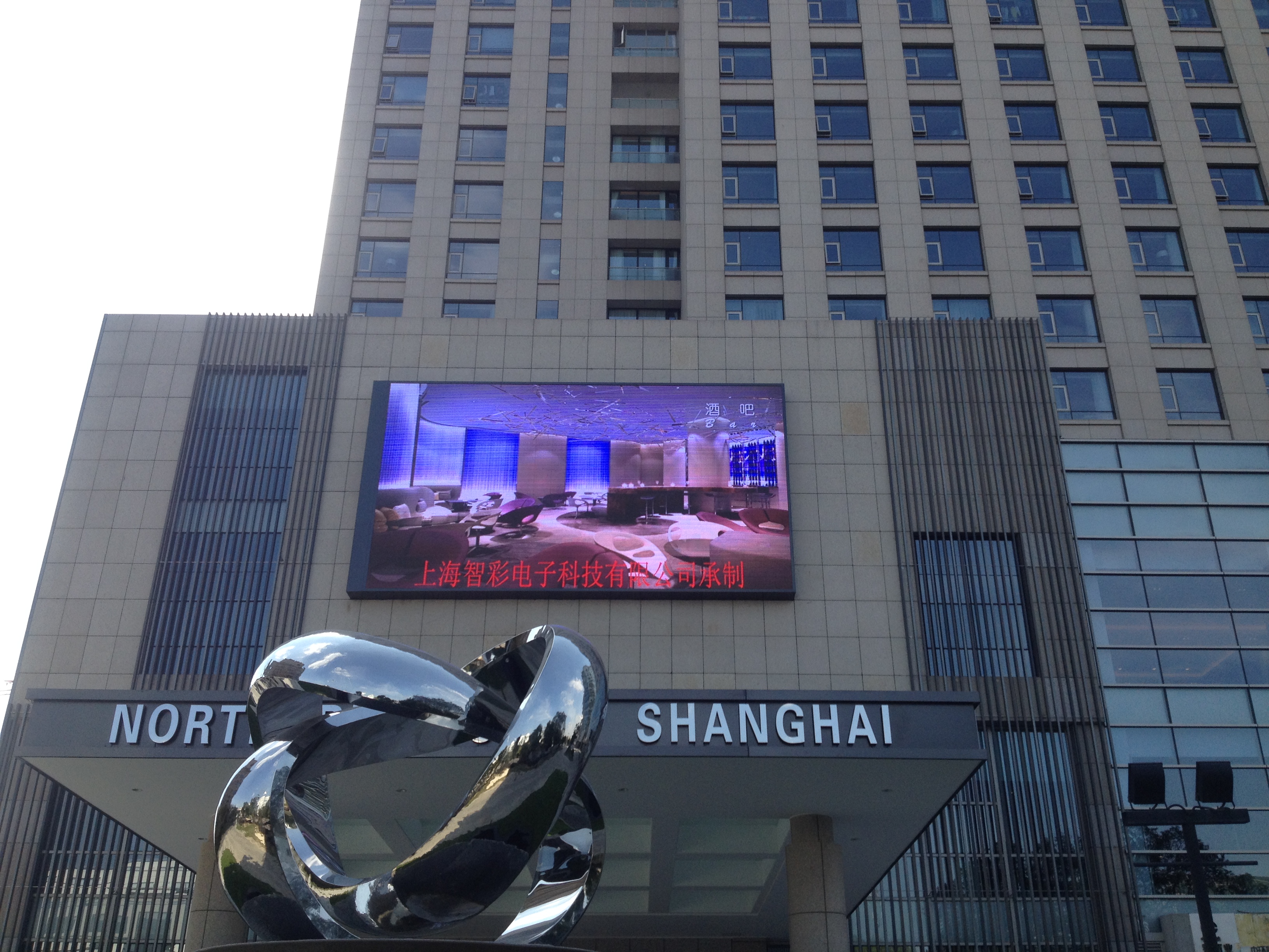 上海北上海國際大酒店P8戶外全彩LED顯示屏由智彩科技定制、安裝